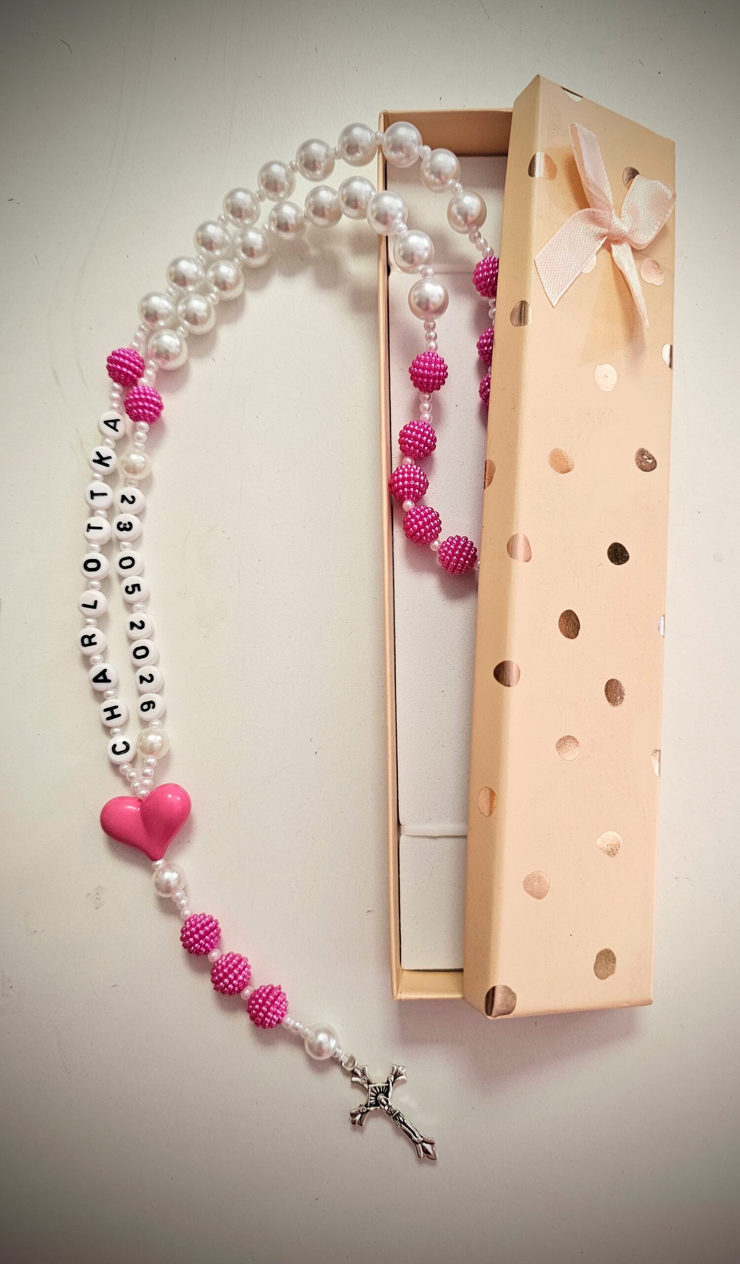 Ruženec je vyrábaný na želanie – meno, dátum, prípadne text mi napíšte do poznámky.